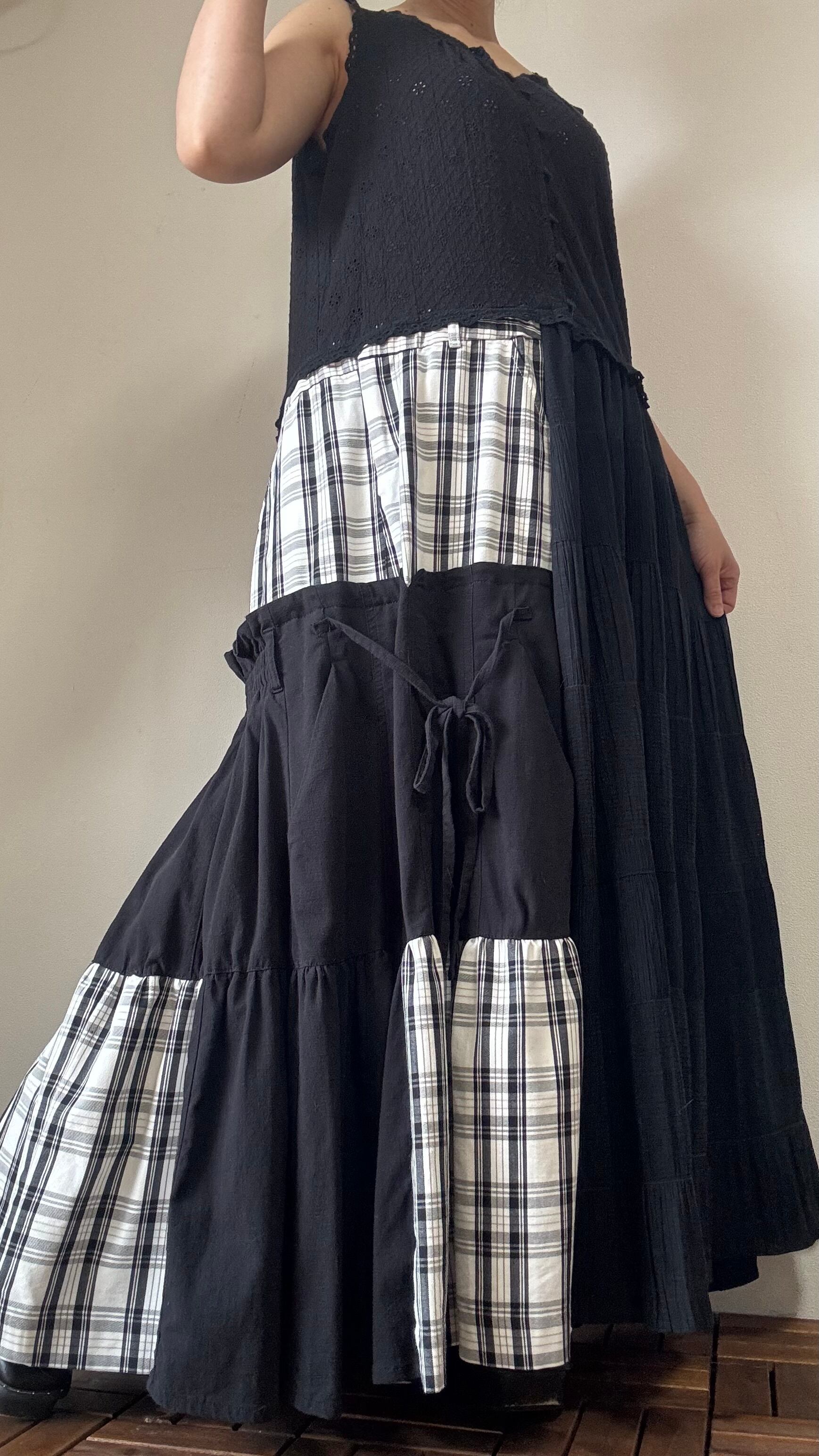No.006 古着リメイクモノトーンワンピース ロング丈