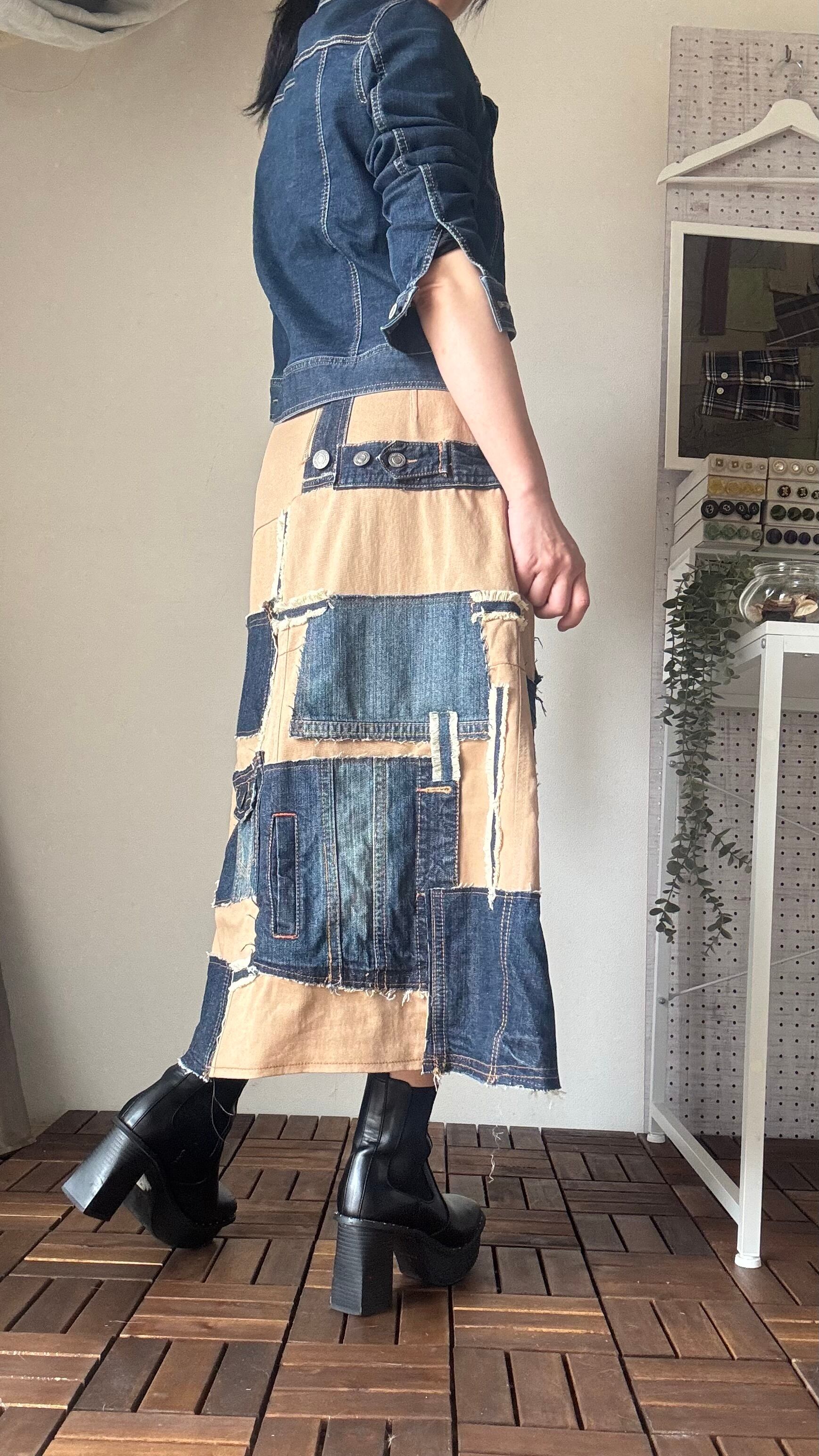 オーダーメイドスカート⭐︎古着リメイク デニムジャケットをアップサイクル スカートセットアップ 個性派