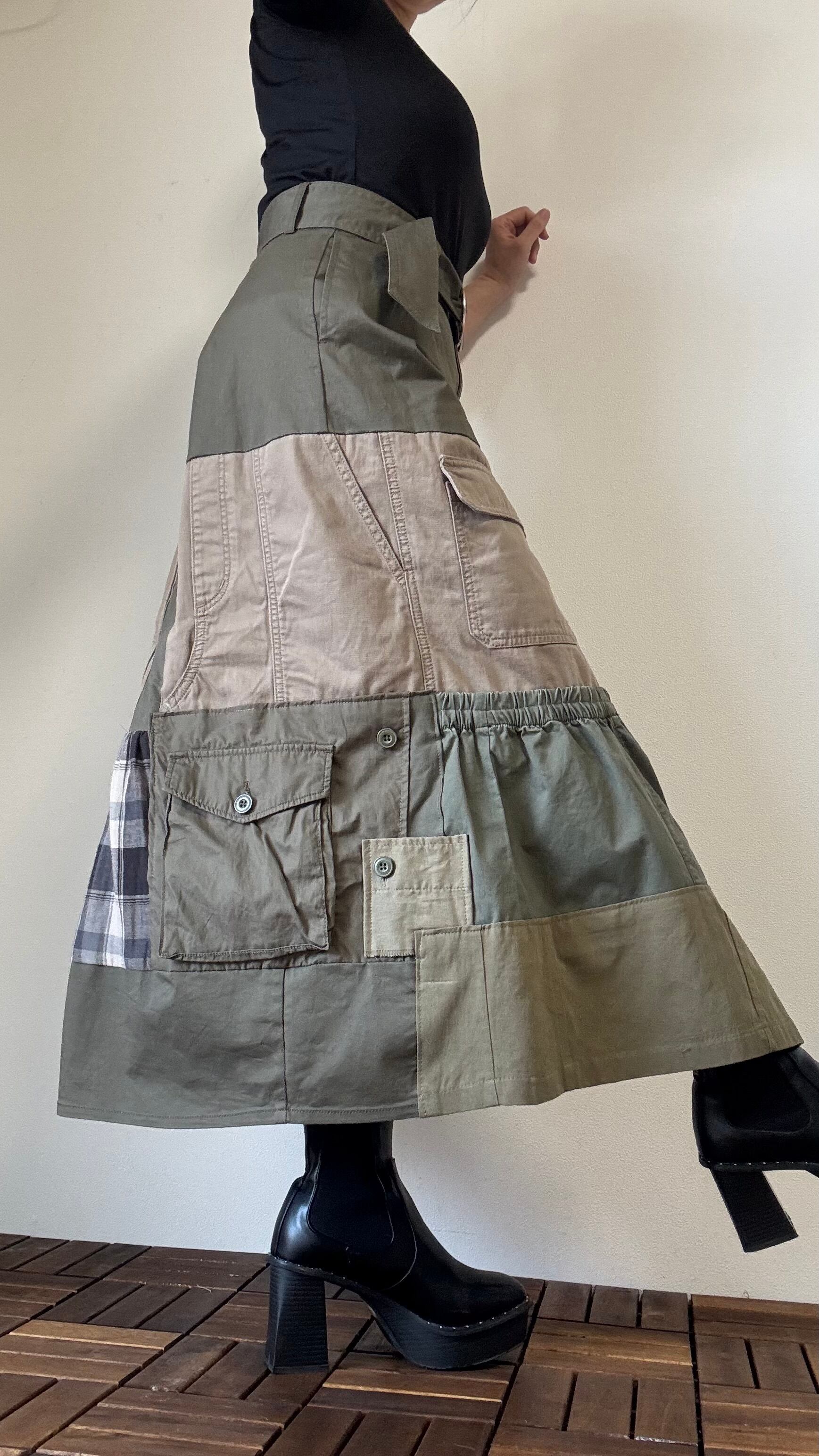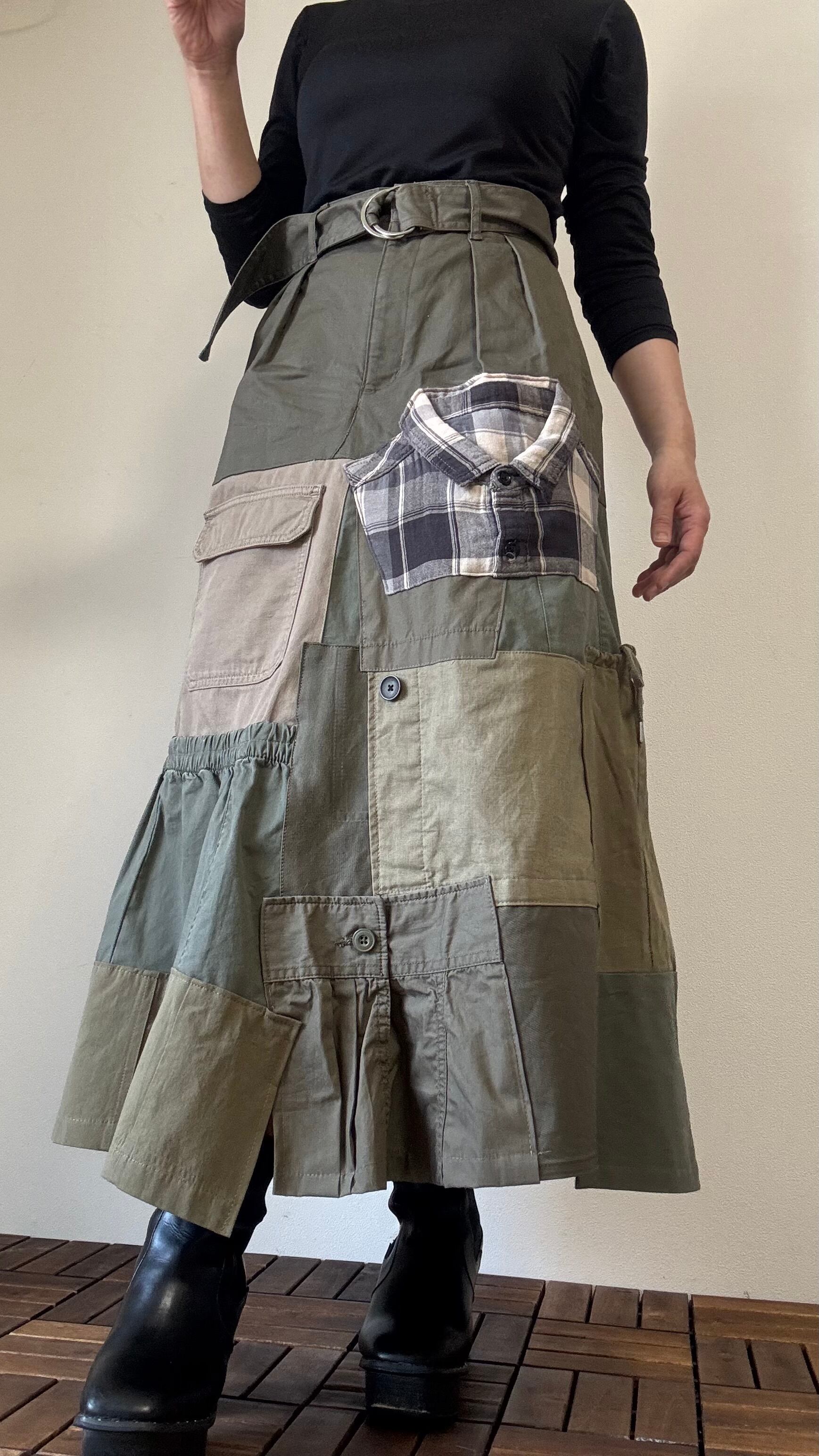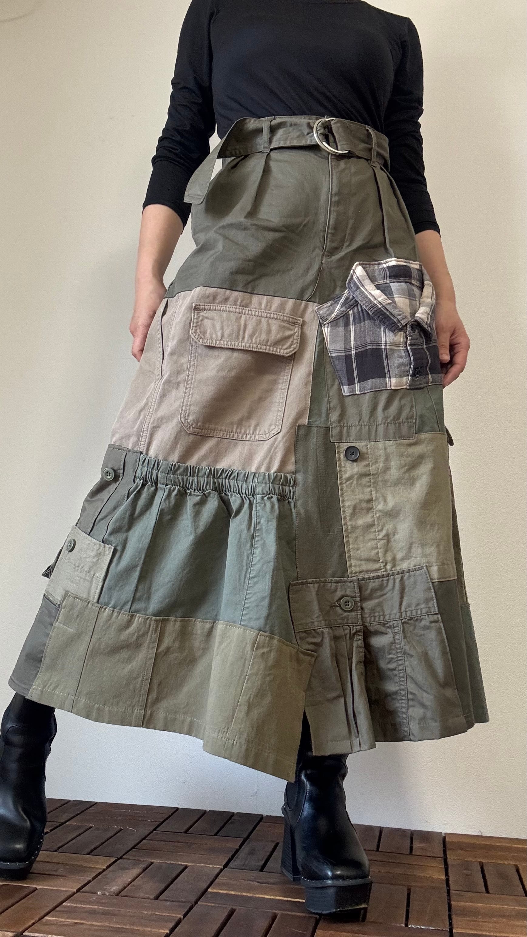 オーダーメイドスカート⭐︎No.026 古着をアップサイクルしたミリタリー系スカート