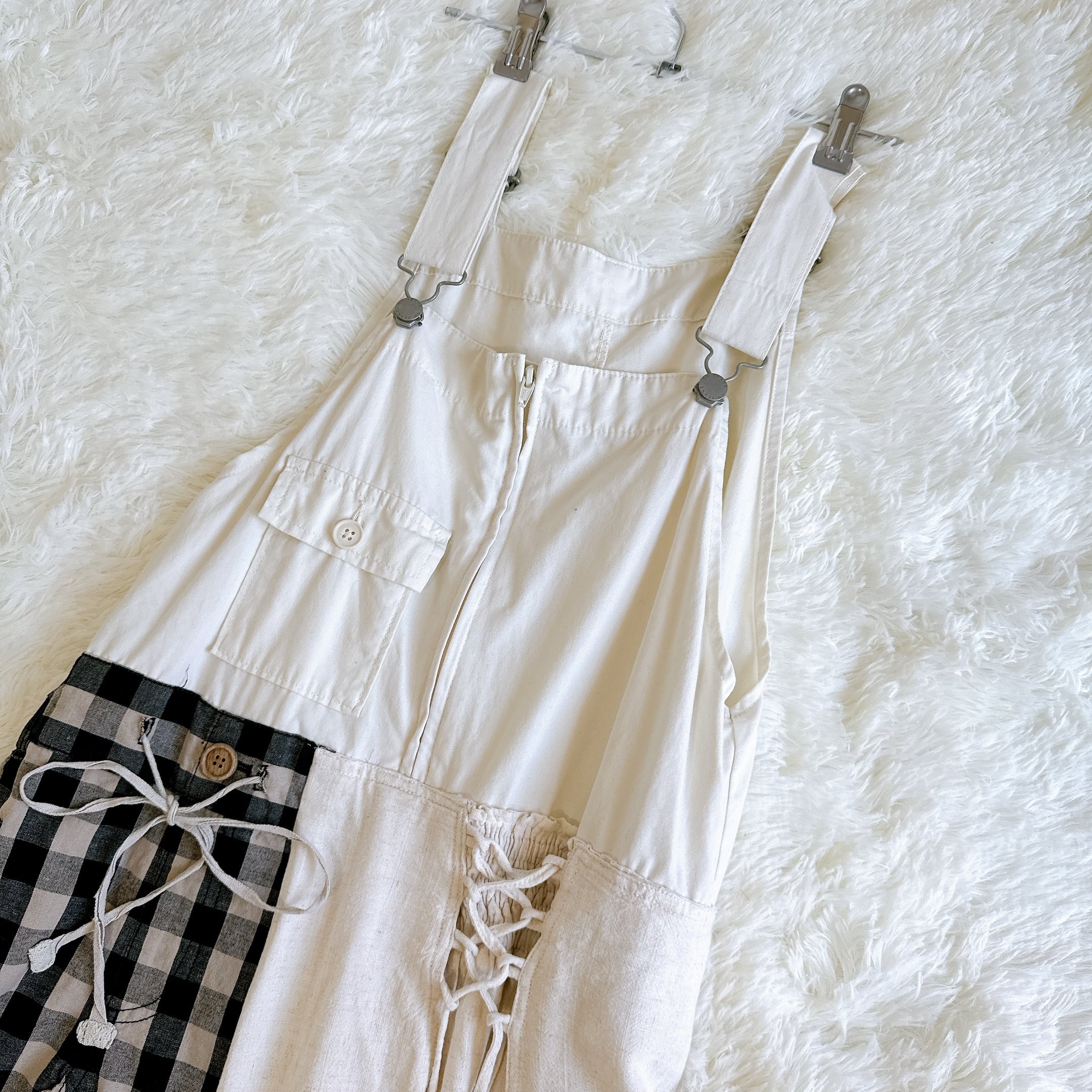 No.001 ハンドメイド1点物 古着リメイクジャンパースカート チェック柄 リネン混