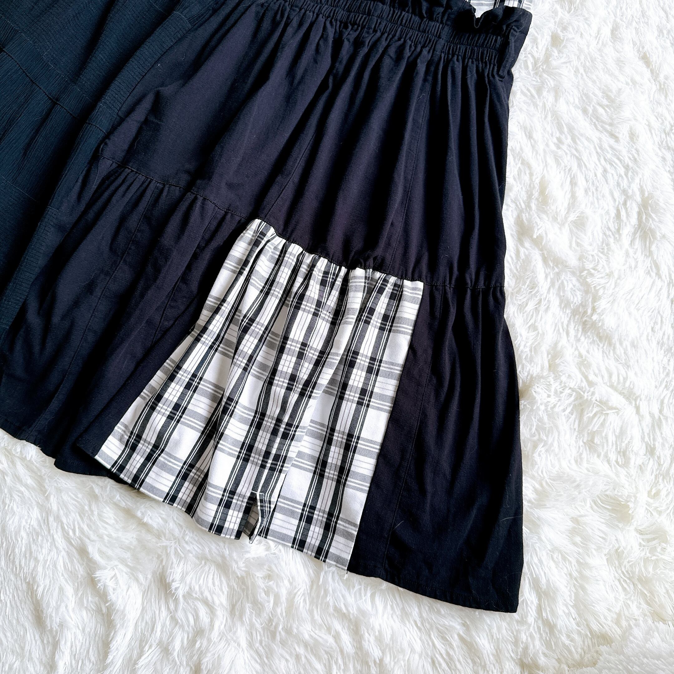 黒ギャザー、リボン付きスカート